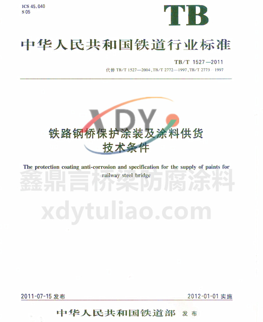 TB/T 1527-2011鐵路鋼橋保護(hù)涂裝及涂料供貨技術(shù)條件標(biāo)準(zhǔn)是裁剪TB/T 1527-2011《鐵路鋼橋保護(hù)涂裝及涂料供貨技術(shù)條件》紙質(zhì)版原文。大家可以放心參考。