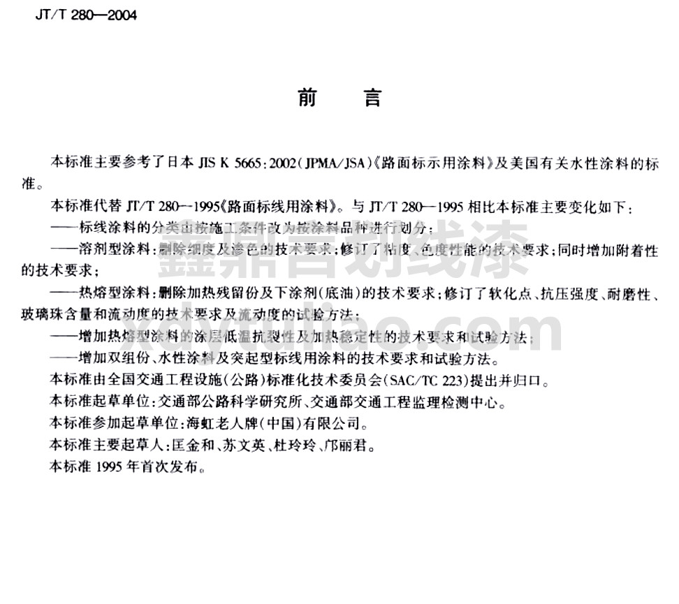 JT/T 280-2004路面標線涂料Pavement marking paint