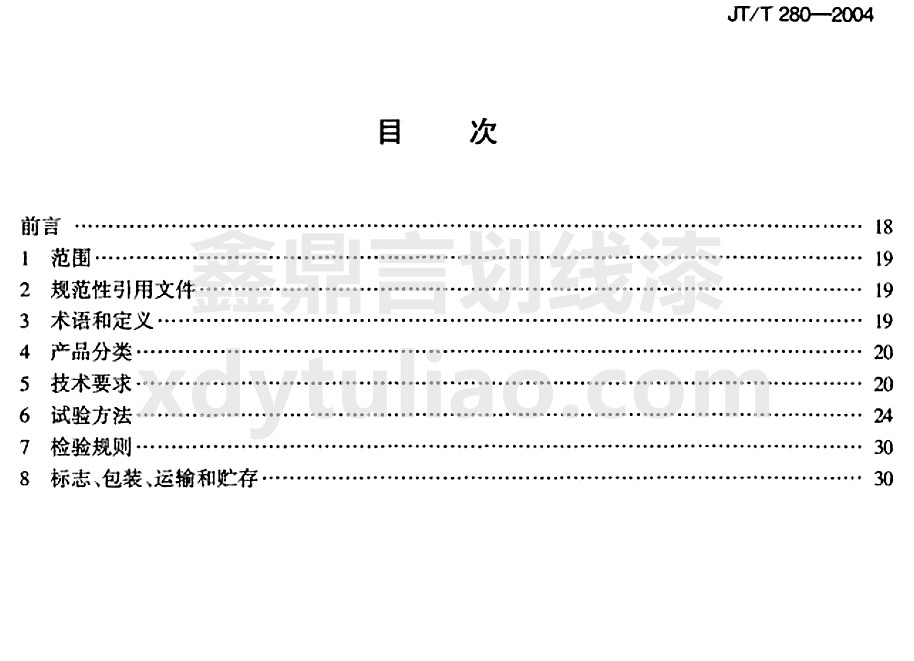JT/T 280-2004路面標線涂料標準是小編照搬JT/T 280-2004《路面標線涂料》紙質版內容,大家可以放心參考。更多防腐涂料執行國家和行業標準等防腐涂料相關信息可以參與網站:m.cead.org.cn
